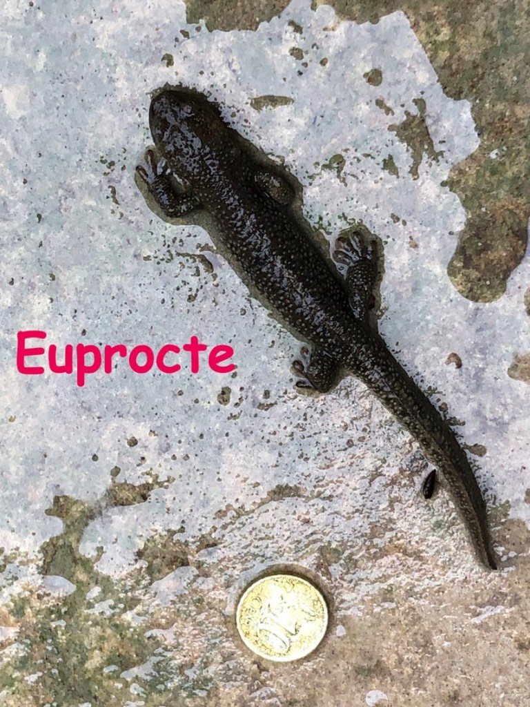 Exemple d’espèce à protéger à Moncaut : ce magnifique amphibien endémique des Pyrénées, menacé d’extinction : 👽 l’Euprocte des Pyrénées, autrefois rattaché à l’euprocte corse, et proche de la salamandre.